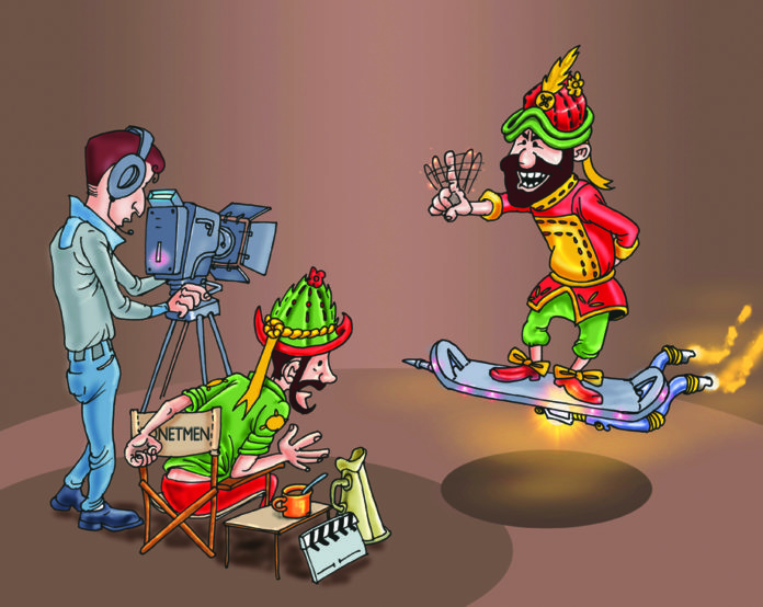 Hacivat: Eveeet. Arkadaşlar çekim başlıyor. Sessizliiik! Işıklaaaar! Kameraaaa! Motooor!