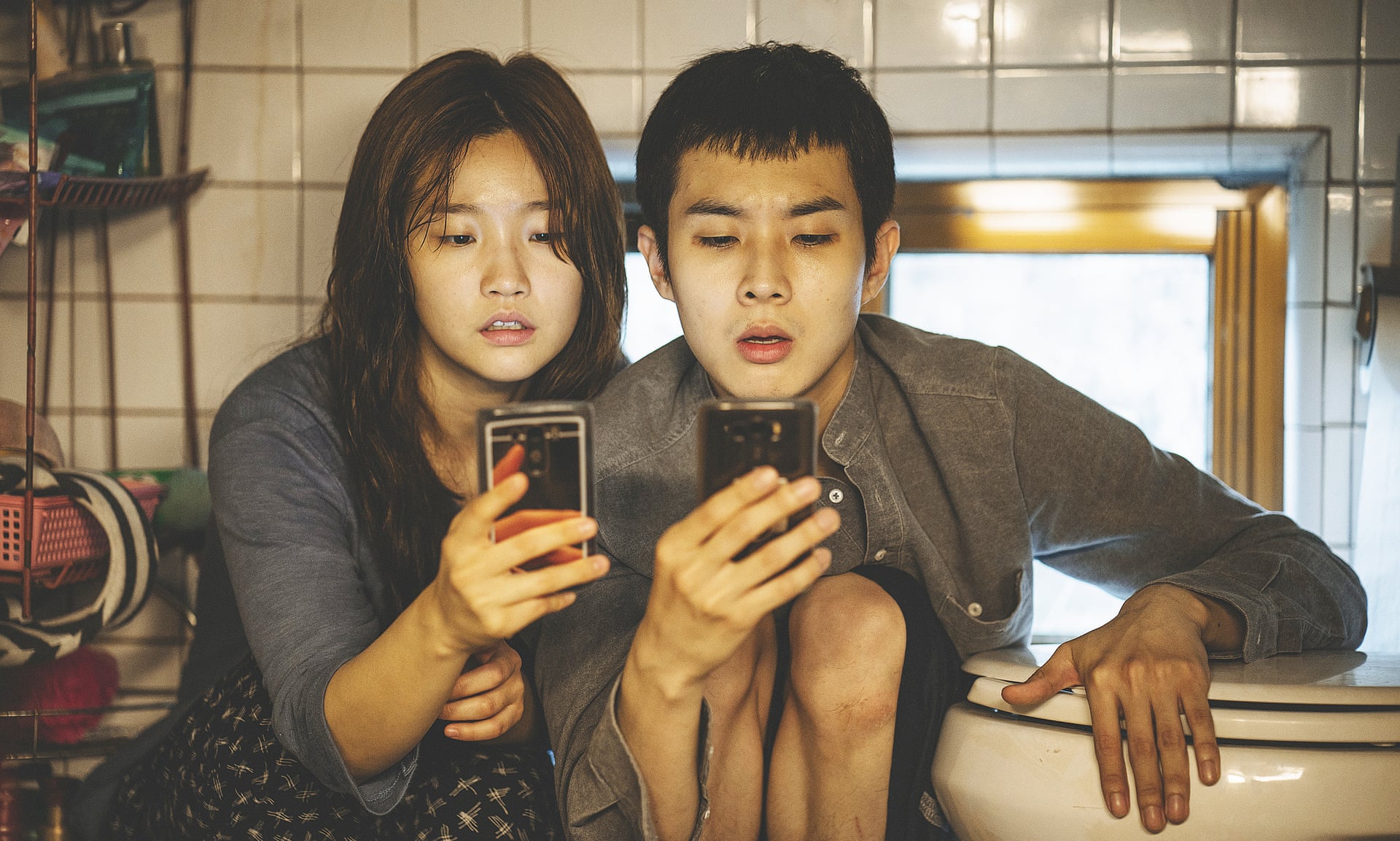 Filmde iki aile var Kim Ki ailesi ve Park ailesi. Kim Ki ailesi şehrin yoksul mahallerinden birinde derme çatma, bodrum katında bir evde yaşıyor. Dördü de işsiz, pizza paketi katlıyorlar, pencereleri insanların ayak hizasını görecek seviyede. Her akşam düzenli olarak sarhoş olup işeyen bir adamı görmek zorundalar örneğin. Yaşamları Rocco ve Kardeşleri’nde (Luchino Visconti 1962) aile şehre ilk geldiğinde yaşadıkları evi anımsatıyor. Evin yer seviyesinin altında olması filmin sonlarında, mahallenin yoğun yağmur yağışıyla kanalizasyon suyu altında kalmasını getirecek beraberinde. Kim Ki ailesi tek bir beden gibi, aralarında gizli saklı yok. Dayanışma ve paylaşım halindeler. İlişkileri çok “sahici” aile fertleri klasik anlamda edepli hareketler sergilemiyorlar birbirlerine karşı. Küfür ediyorlar, yayılıyorlar, sigara içiyorlar. Tıpkı Shop Lifters’daki (Hirokazu Koreeda 2018) aile gibi. Ancak birbirlerine bağlılıkları film boyunca hiç sekteye uğramıyor. Kim Ki ailesi, evlerini kanalizasyon suyu bastığında evin içinden ve aile fertlerinin gözünden yapılan çekimlerde metaforik olarak suça ve yozlaşmaya batmış olarak temsil ediliyorlar. Bu anlamda özellikle, kızları Kim Ki Jung’un taşmakta olan klozetin kapağını kapatıp üstüne oturduğu ve sigara içtiği sahne oldukça manidar. Filmin başında en güçlü internet sinyali tuvaletten geldiği için iki kardeşin klozetin dibine oturup telefonlarından internetle meşgul oldukları sahneyi de aynı minvalde yorumlayabiliriz.