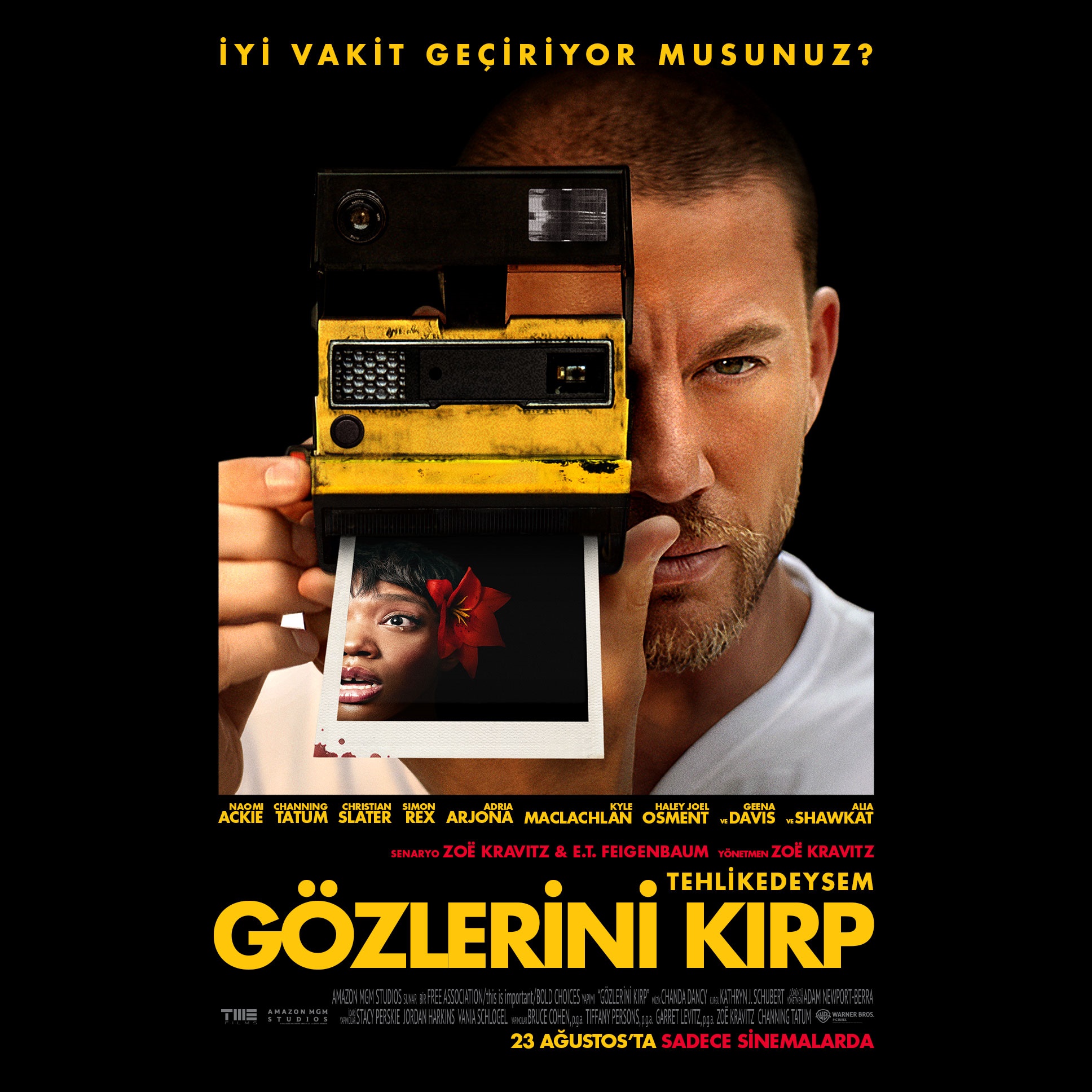 Mad Max: Fury Road, The Batman ve Fantastic Beats yapımlarındaki performanslarıyla tanınan ünlü oyuncu Zoë Kravitz’in ilk defa yönetmen koltuğuna oturduğu film Gözlerini Kırp seyirciyle buluşmaya hazırlanıyor. Naomi Ackie ve Channing Tatum’un başrollerinde yer aldığı ve psikolojik gerilim severlerin keyifle izleyeceği “Blink Twice / Gözlerini Kırp”, 23 Ağustos’ta sinemalarda olacak.