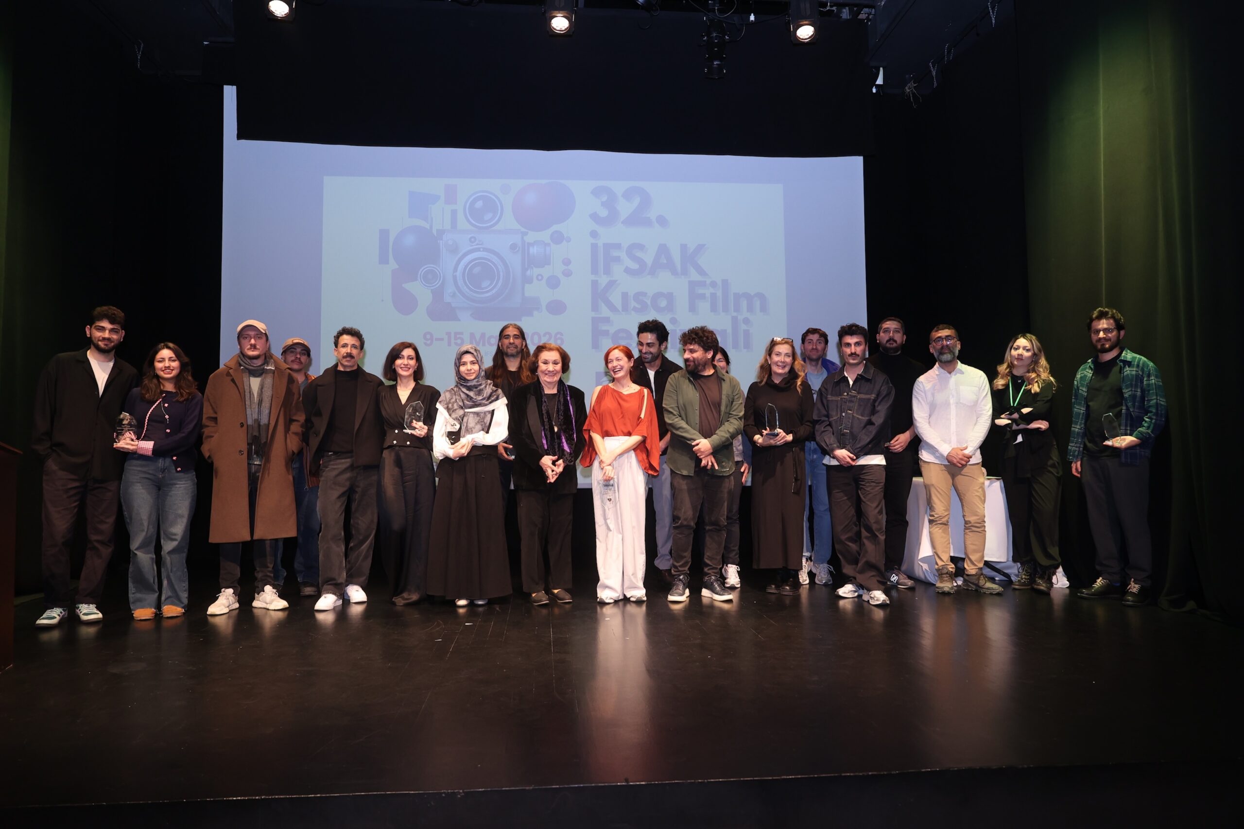Bu yıl 32. kez düzenlenen İFSAK Kısa Film Festivali kapsamında 14 Mart 2026 Cumartesi günü Sainte Pulchérie Lisesi Gösteri Salonunda düzenlenen ve sunuculuğunu Barkın Nevresoğlu’nun yaptığı kapanış ve ödül töreni gerçekleştirildi. Ödül Töreni, İFSAK Yönetim Kurulu Başkanı Tania Sisa’nın konuşmasıyla başladı. Festival destekçileri olan İtalyan Büyükelçiliği, İtalyan Kültür Merkezi, Com.it.es., Yunanistan Başkonsolosluğu, Hindistan İstanbul Başkonsolosluğu, Hollanda Krallığı İstanbul Başkonsolosluğu, Dimitrie Cantemir Romen Kültür Merkezi, Avusturya Kültür Ofisi, Fransız Kültür Merkezi, Cervantes Enstitüsü İstanbul, Liszt Enstitüsü Macar Kültür Merkezi ve British Council’e teşekkür belgelerinin sunulmasının ardından her yıl düzenli olarak verilen İFSAK Sinema Emek Ödülü de sahibini buldu.